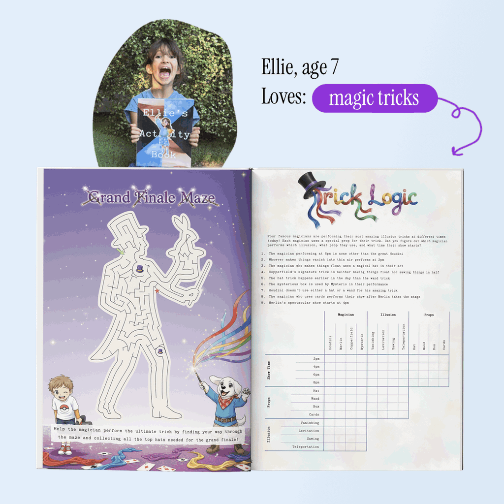 Their unique interests become personalized puzzles, mazes, crosswords, drawings, and more.